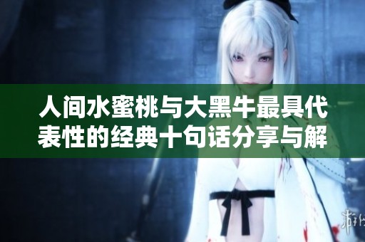 水蜜桃大黑牛系列以其独特的风格和有趣的台词引发了广泛讨论。每一句经典台词不仅让人莞尔一笑,更是深入人心,比如“人生就像水蜜桃,甜中带点酸”。正是这些幽默而又哲理的句子,让每一个观众都能找到共鸣,体会到生活的五味杂陈。